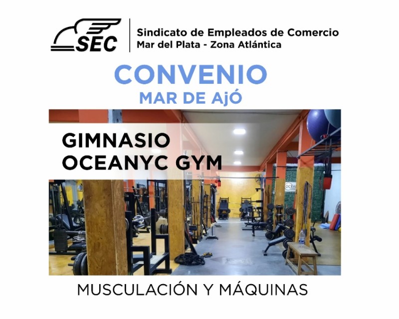Gracias a un nuevo convenio gestionado por el Sindicato de Empleados de Comercio, todos los afiliados y sus familiares a cargo podrán acceder a importantes beneficios en Oceanyc Gym, ubicado en Mar de Ajó.