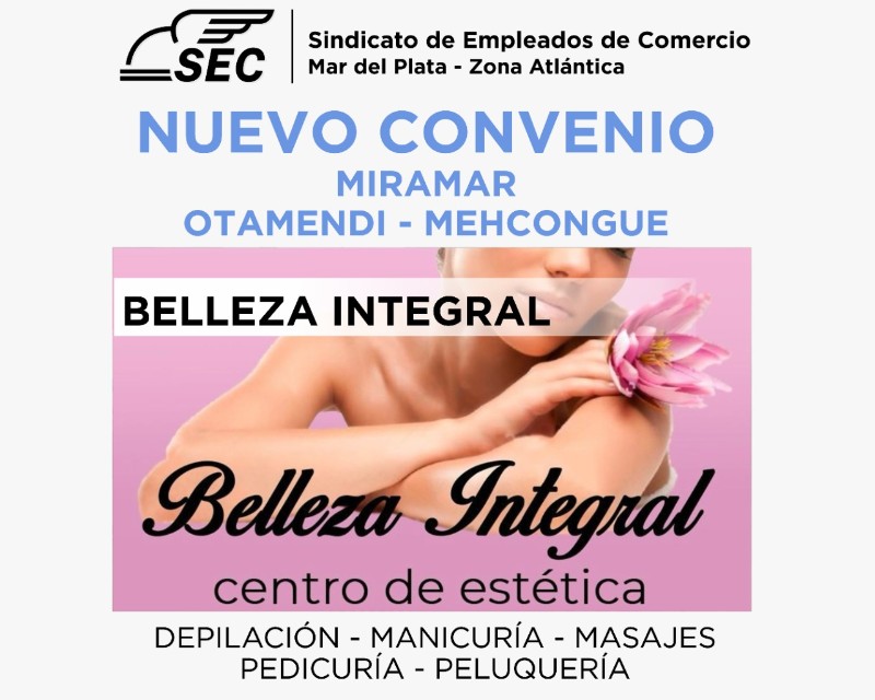 La Secretaría del Interior informa que se realizo un nuevo convenio para los afiliados y familiares a cargo al sindicato, en esta oportunidad con el "CENTRO DE ESTETICA BELLEZA INTEGRAL UNISEX", con domicilio en Shopping Down Town, local 21 nº 1099 (Av. 23 ESQ. 22). Podés acceder a descuentos en Depilación -Manicuría -Masajes -Pedicuría -Peluquería. Para más información y retirar tu bono en la Delegación de Miramar. Dirección: Calle 21 n° 1749. Teléfono: (2235) 067832. Whatsapp: 02291-423009. Mail: secamiramar@hotmail.com. Horarios de atención: Lunes a Viernes de 8 a 16hs