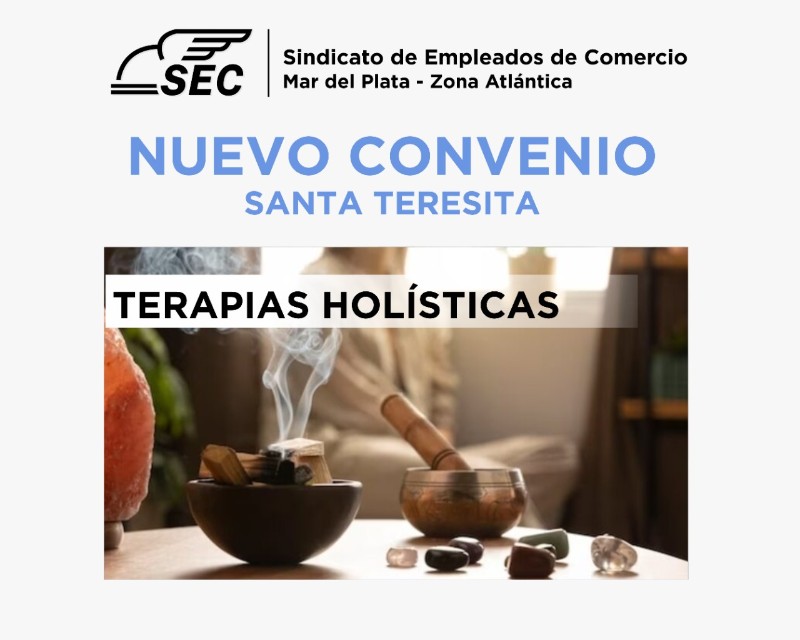 La Secretaría del Interior sigue sumando nuevos convenios para los afiliados al sindicato, en esta oportunidad con "TERAPIAS HOLÍSTICAS" de Patricia Sangol, con domicilio en Calle 41 nº 523. Para afiliados al sindicato y familiares a cargo. Las actividades que podés realizar son: - Sesión de Reiki - Desbloqueo y armonización de chacra - Radiotesía - Masajes Ayurvédicos - Medicina natural a base de hierbas y plantas - Tratamientos faciales Champi - Yoga facial. Para más información y retirar tu bono en la Delegación de Santa Teresita Dirección: Calle 37 n° 443, Teléfono: (02246) 420109, Whatsapp: 223-5025181. Horarios de atención: Lunes a Viernes de 8 a 16hs.