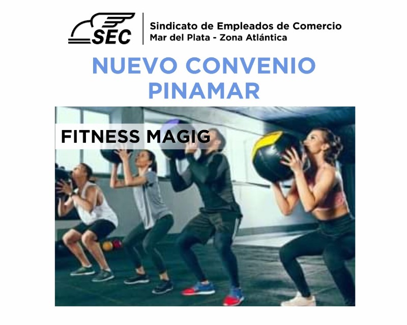 El Sindicato de Empleados de Comercio informa que se realizó un nuevo convenio con el "Fitness Magic" de la calle Espora 1608, de la ciudad de Pinamar, las actividades que podrán efectuar son Entrenamiento Funcional, Localizada, Pilates, Stretching, Gap, Clases personalizadas y Grupales. Los afiliados tendrán que dirigirse a la Delegación para retirar bono. Beneficio exclusivo para socios y familiares a cargo al Sindicato de Empleados de Comercio.